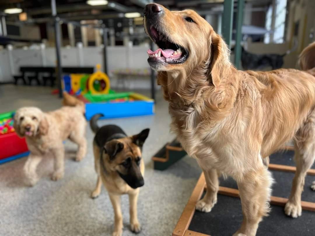 We intentionally manage noise levels throughout the day because a consistently loud environment can increase stress and make it harder for dogs to rest and recover. Our team actively monitors play and group dynamics, reinforcing calm, appropriate play and stepping in when energy or vocalization begins to escalate.